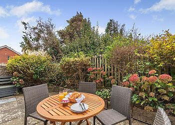 - Enclosed garden with patio dining area