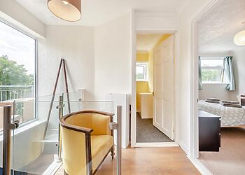 - Open-plan living with bay windows